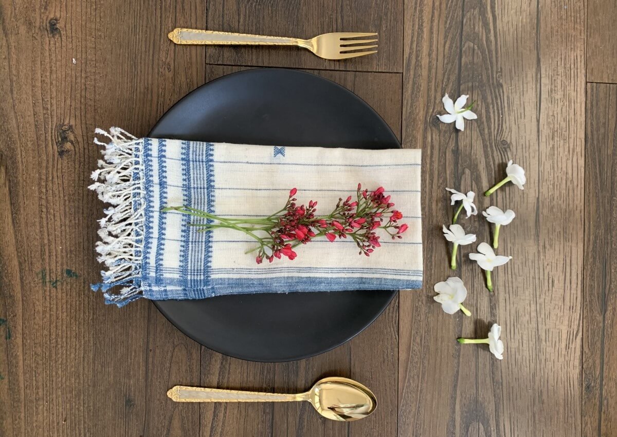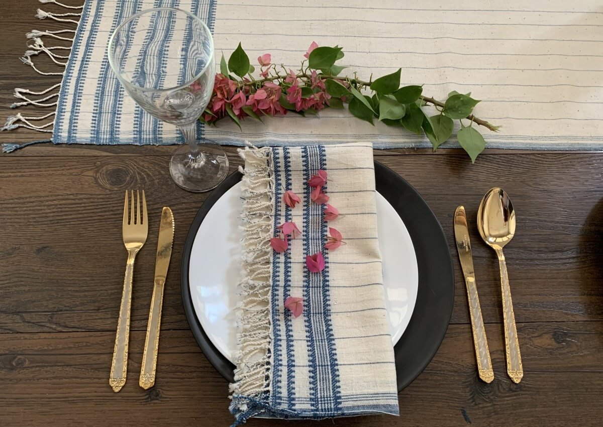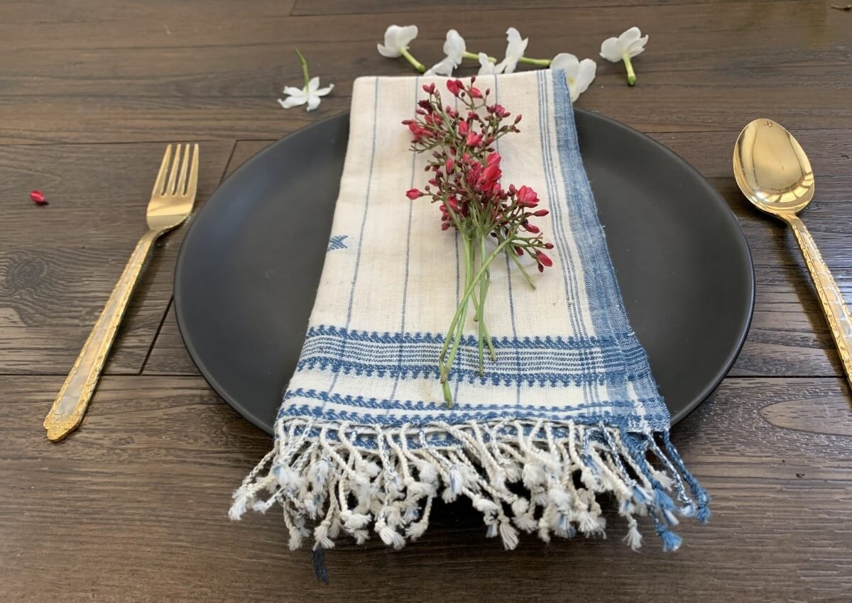 100% Organic Cotton handwoven Napkin with Natural Dyes. These intricately handwoven and handcrafted napkins have been designed by artisans using traditional craft techniques.